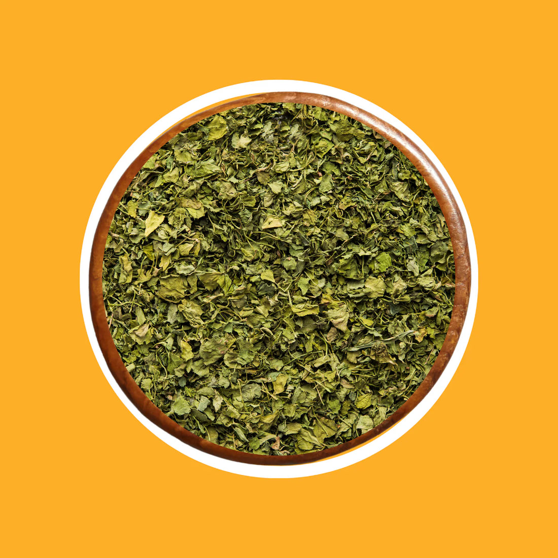 Methi Patta Barik, or fenugreek leaves, have a slightly bitter taste with notes of sweetness...